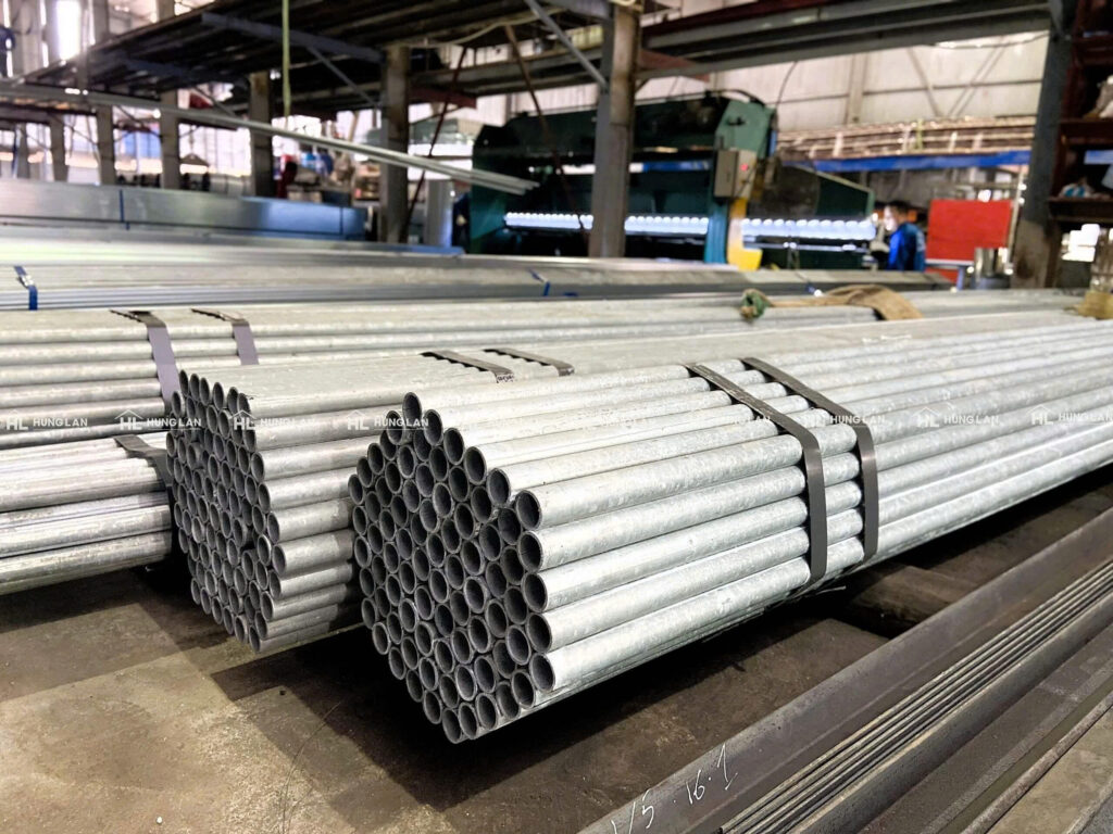 Thép mạ kẽm nhúng nóng được ứng dụng rộng rãi trong ngành xây dựng, đặc biệt cho các công trình có kết cấu thép lớn. Dầm nhà thép, cột thép, khung giàn giáo và hệ thống mái nhà đều sử dụng thép mạ kẽm để đảm bảo độ bền và an toàn lâu dài.